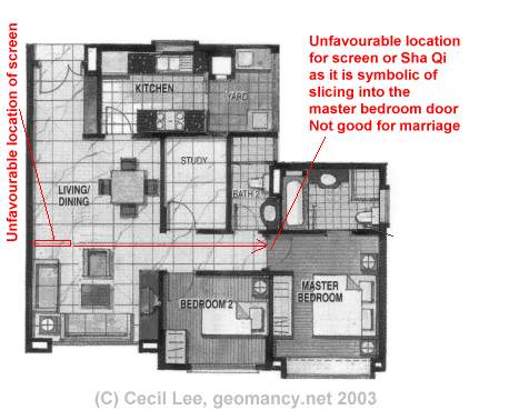 4. Since the master bedroom door is at the end of the corridor, the screen should not be seen to cut into the master bedroom door.