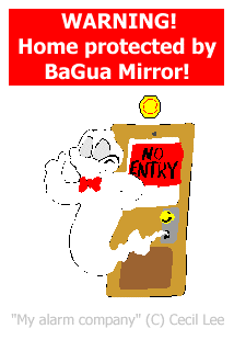 16.2 For Feng Shui practitioners who may be religious inclined may perhaps, ask their clients to place a ba gua mirror or a ba gua mirror with door gods on it; or even a yellow charm to ward-off evil. But in my opinion, if there is an existence of a ghost, logically, it is difficult to imagine how can a ghost be scared of a fish. Be it a dragon fish or any other fish.