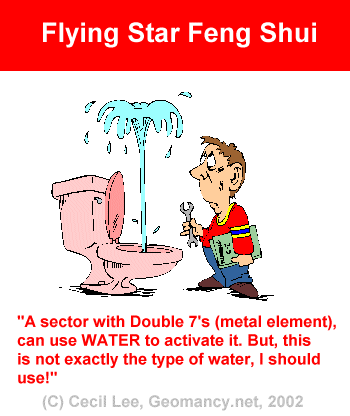 My wife and I consulted a well-known Geomancer for our present home. We were instructed to place a piggy bank at the wealth sector and to put some money into it everyday. It's like your wealth is growing everyday. We were told not to place any moving objects such as clock, electrical appliances, plants etc..... anything that is "live" near the wealth sector. These things will "disturb" the wealth. One thing in particular was not encourage was the rearing of fishes. You will be throwing away a lot of water "your wealth" when you do water changing of your tanks. But, I've heard many stories of hotels and Companies who were not doing well put waterfalls, fishes and fountains after being advised by their engaged Geomancer. It is kind of strange these businesses flourished after they did what was being told. The waterfalls and fountains movement are even greater and the water changes are far much more yet the results are very positive.